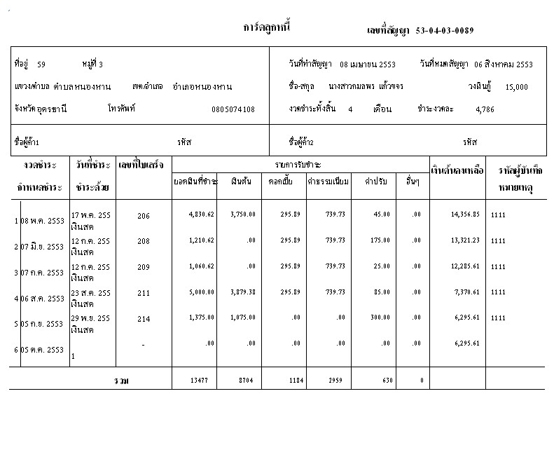 ได้ ปัจจุบันมีบริษัท และบุคคลให้ความไว้วางใจ ใช้โปรแกรมบริหารสินเชื่อส่วนบุคคล ดอกคูน ในการบริหารสินเชื่อ สามารถสร้างผลกำไร ลดความผิดพลาด ลดงาน และคืนทุนในเวลารวดเร็ว ตัวอย่างสัญญาเงินกู้ และการ์ดลูกหนี้