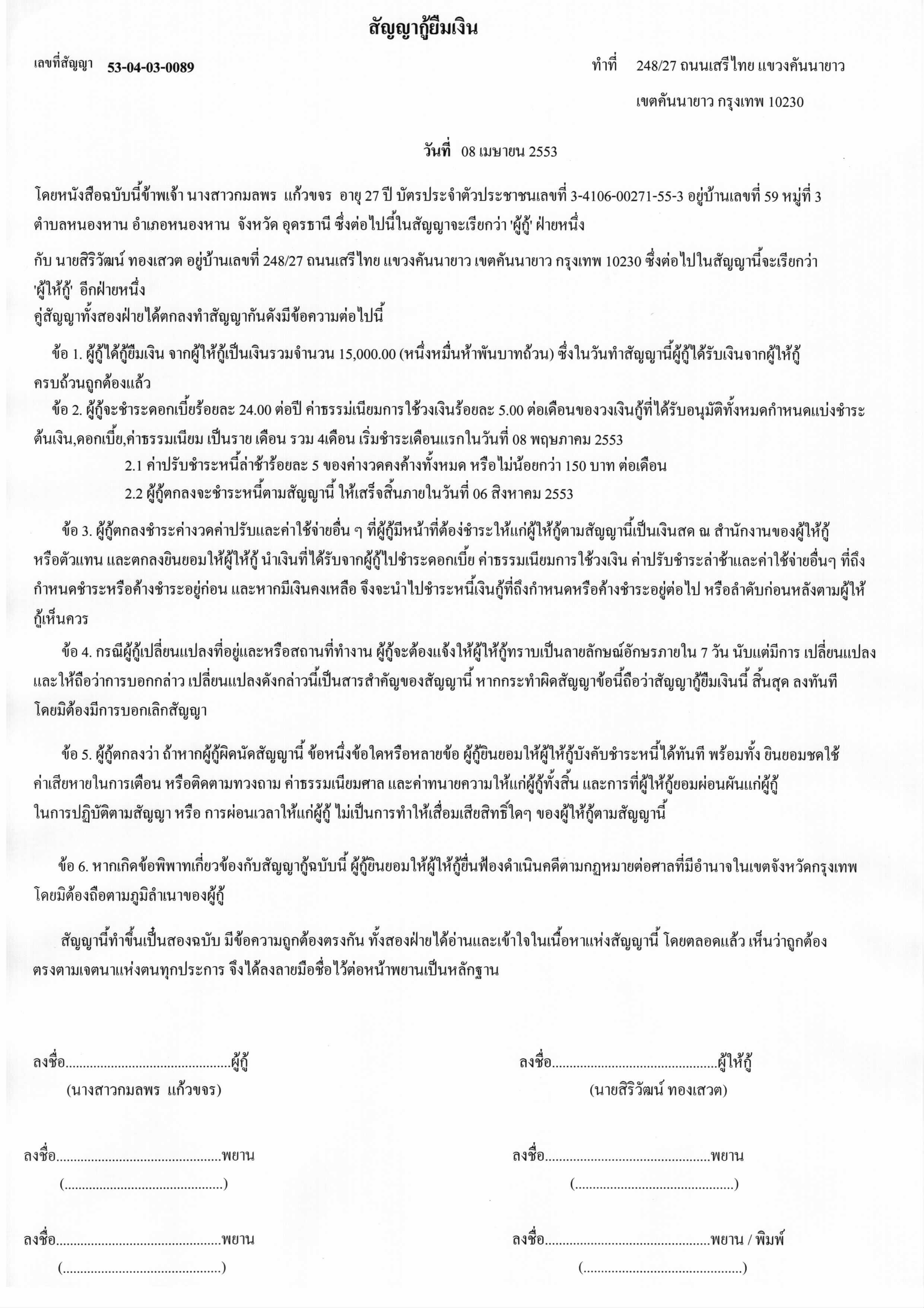 ได้ ปัจจุบันมีบริษัท และบุคคลให้ความไว้วางใจ ใช้โปรแกรมบริหารสินเชื่อส่วนบุคคล ดอกคูน ในการบริหารสินเชื่อ สามารถสร้างผลกำไร ลดความผิดพลาด ลดงาน และคืนทุนในเวลารวดเร็ว ตัวอย่างสัญญาเงินกู้ และการ์ดลูกหนี้